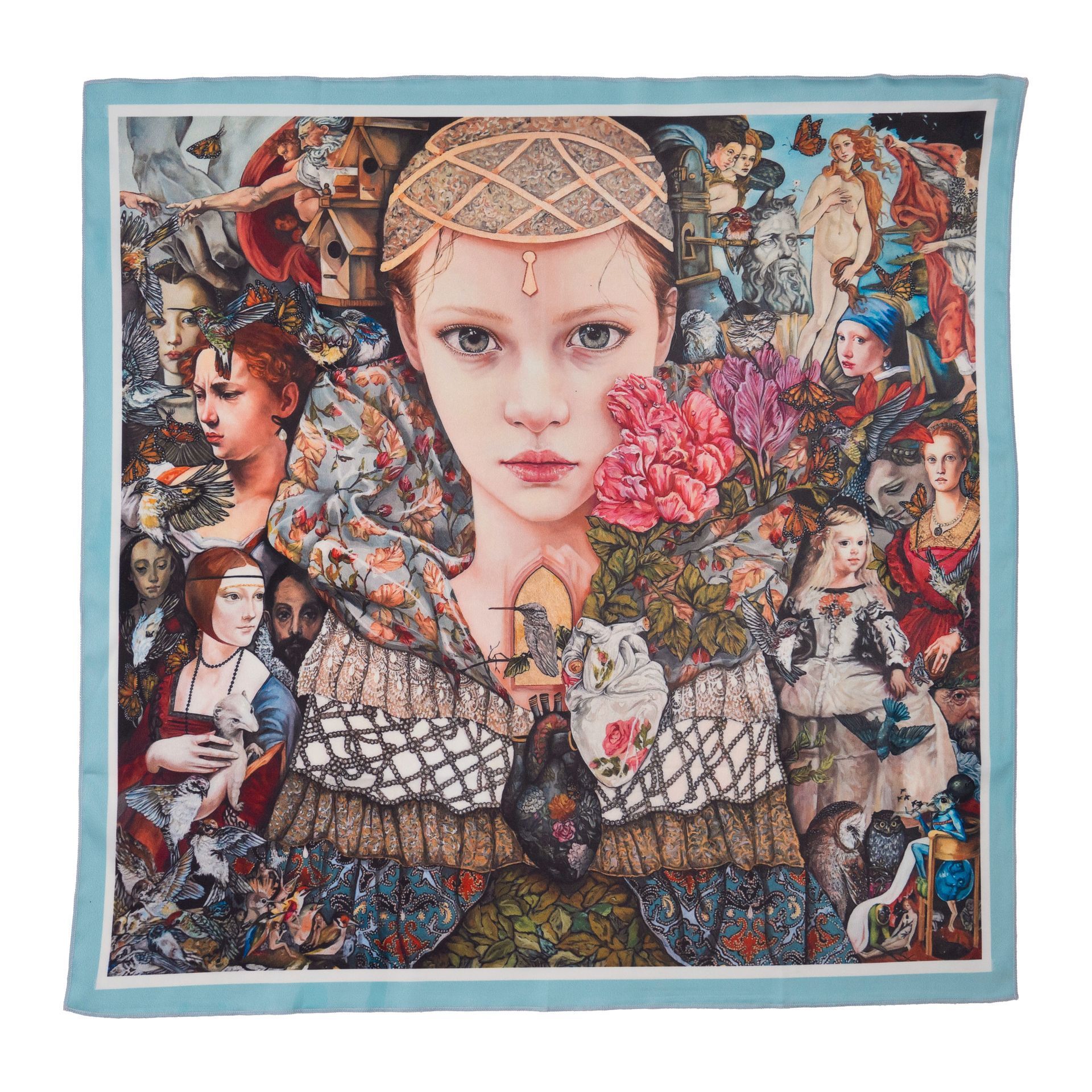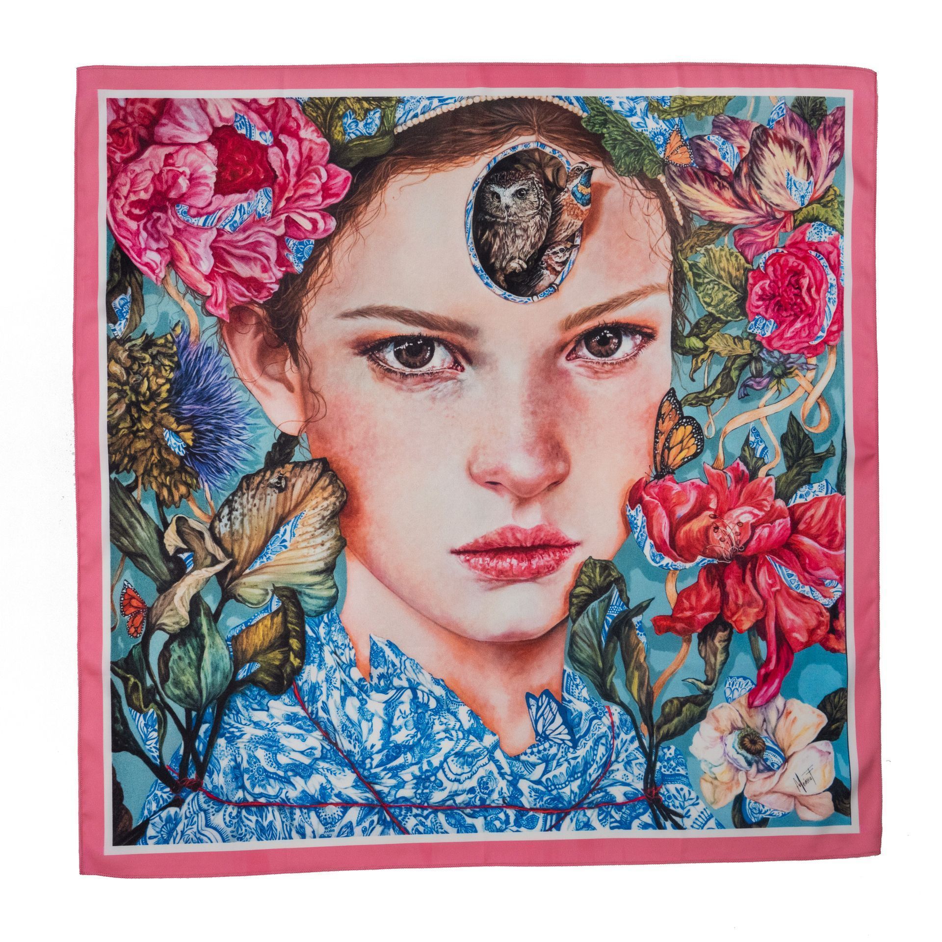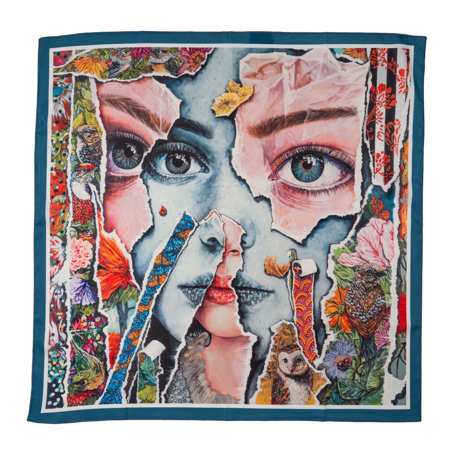 Mascada de tela tacto seda con obra de la artista Mónica Fernández